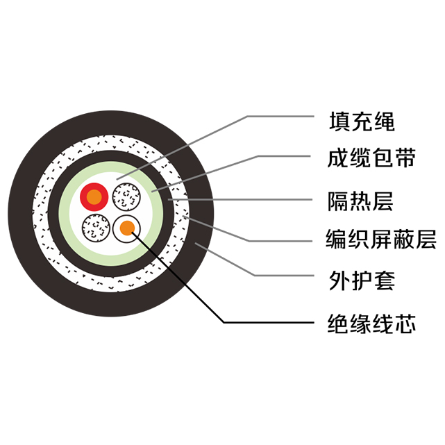 适用于应答器与LEU地面电子单元的连接,传输报文数据信息及电能。综合护层结构电缆具有一定的 屏蔽性能,可用于非电气化铁路区段或电磁干扰较弱的区段,铝护套结构电缆具有良好的电磁屏蔽性能,可用于电气化铁路或电磁场干扰强的区段。编织屏蔽电缆具有柔软性,可用于室内LEU地面电子单元与室内分线柜间、室外电缆终端盒与有源应答器间的连接。