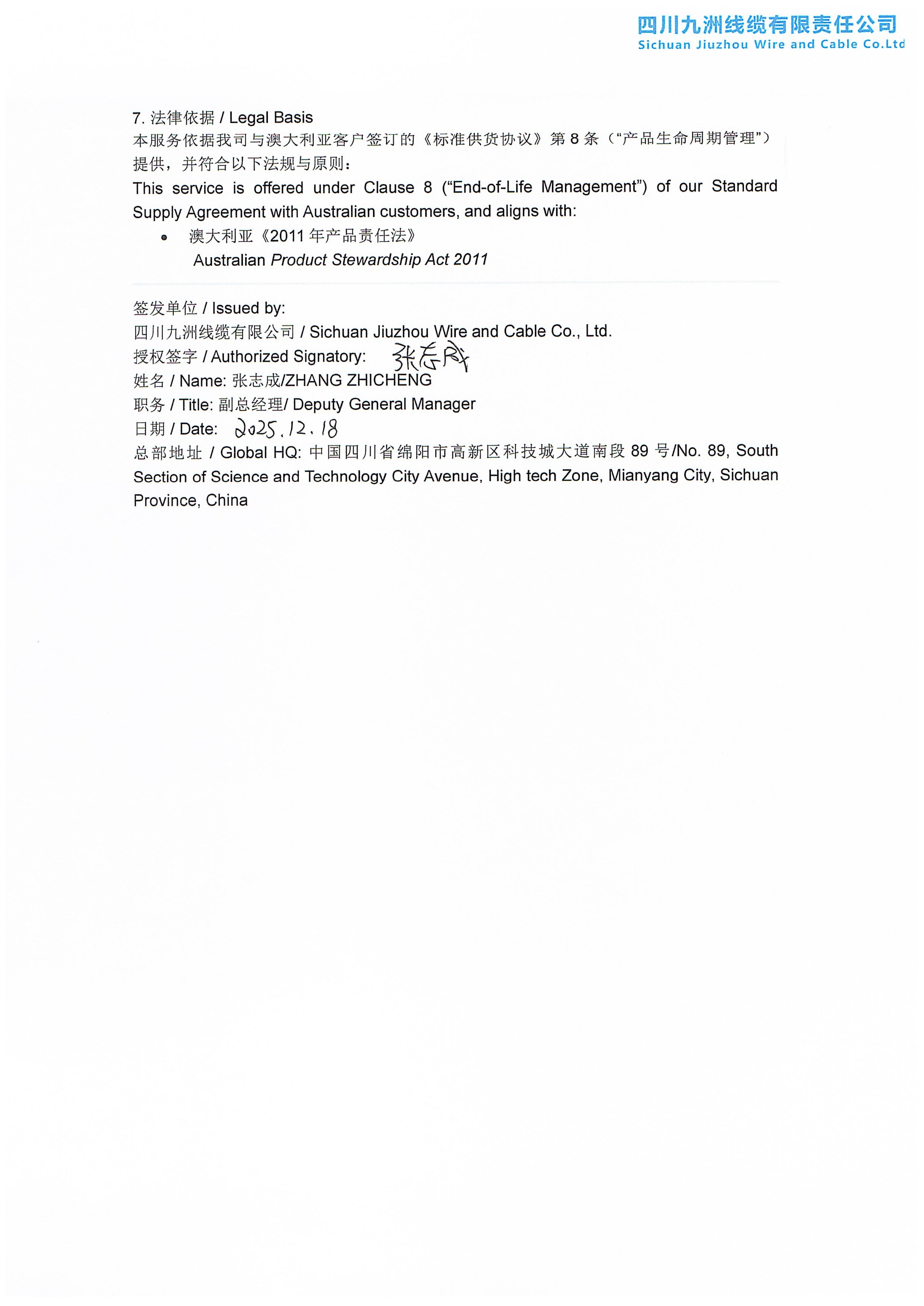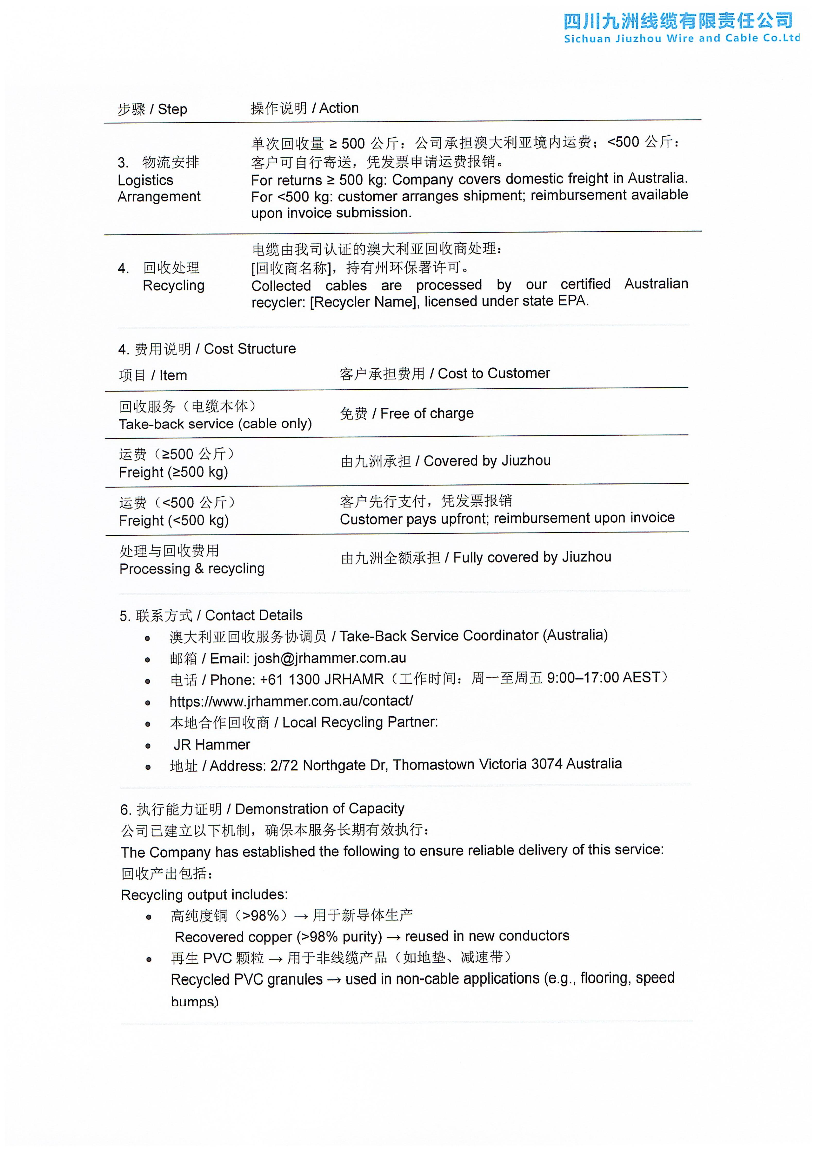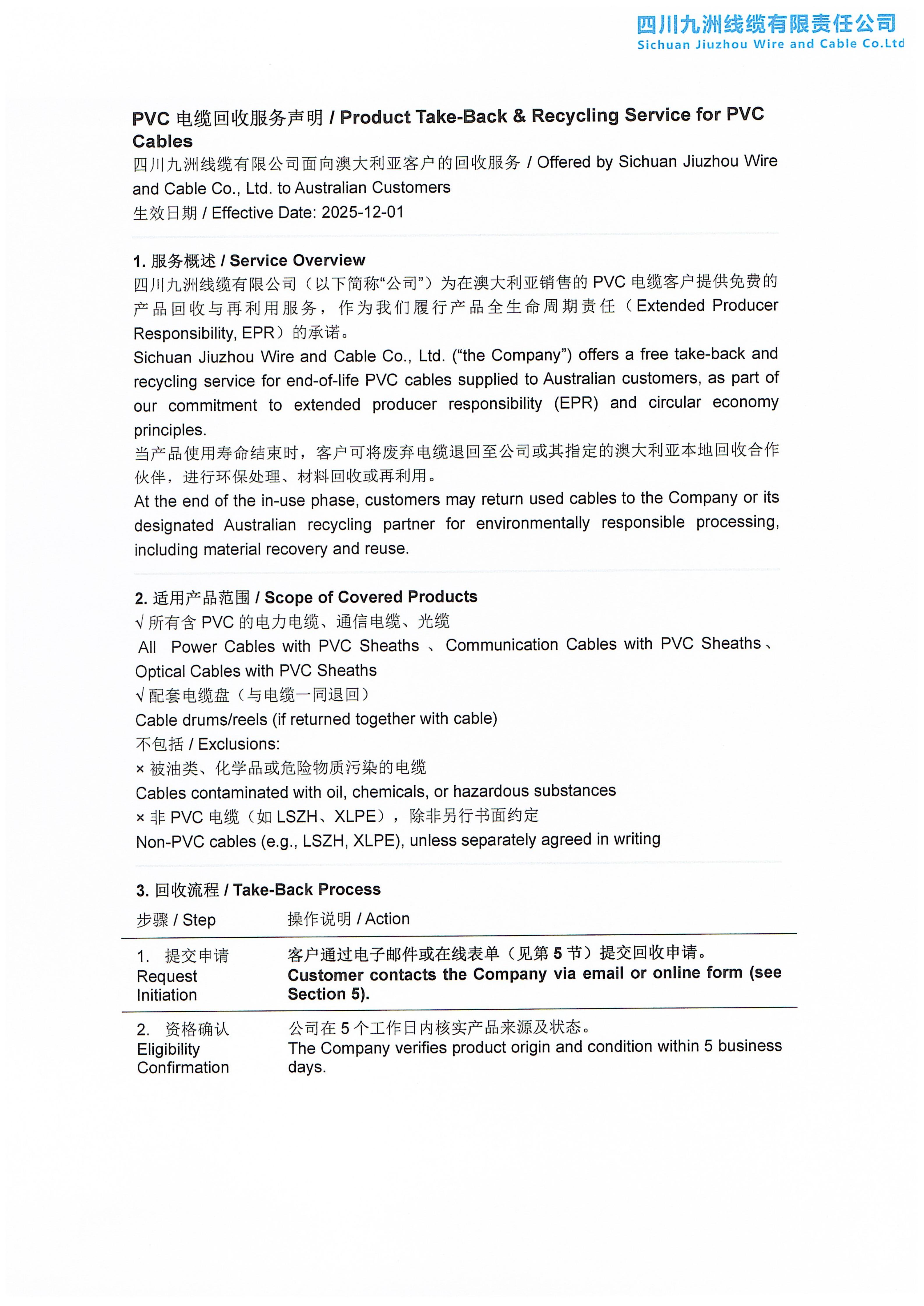 PVC 电缆回收服务声明